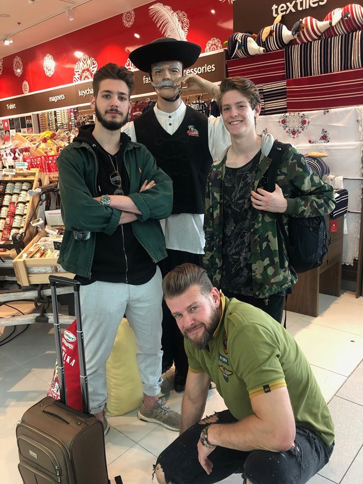 Kamarás Iván (lent) szeret a fiaival, Igorral (balra) és Zalánnal utazni / Fotó: Budapest Airport Facebook