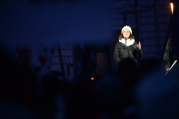 Szél Bernadett független országgyűlési képviselő szerint büszkeségre ad okot, hogy sokféle pártzászló alatt, félelem nélkül fog össze az ellenzék, amikor a szavak után elérkezett a tettek ideje, miközben a hatalmon lévők mindent elkövetnek, hogy féljenek tőlük. Szerinte Orbán Viktor „buta országot akar, lebutított alattvalókkal”, ezért űzte el az ország legjobb egyetemét, veri láncra vagy teszi „csak sleppje által megfizethető” magánegyetemmé a többit. Az Akadémiát „a legnagyobb magyar alapította és a legkisebb magyar akarja sírba tenni” – mondta.