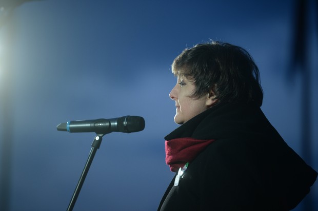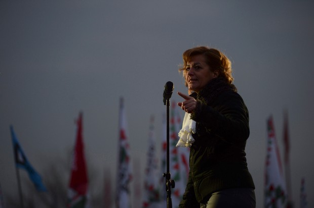 Az évértékelő helyszínén fekete lepellel burkolt kordonokra utalva Bangóné Borbély Ildikó szocialista párti parlamenti képviselő kijelentette, „Orbán Viktort a sötétség veszi körül”, miközben nem az itt tüntető nép, hanem „talpnyalói” előtt beszél az elmúlt esztendőről. A kormányfő által elmondottakra reagálva az ellenzéki politikus arról beszélt: a következő nemzedék tagjai csak akkor élhetnek jobban szüleiknél, ha elhagyják a hazájukat, külföldön tanulnak és építenek biztos jövőt maguknak.