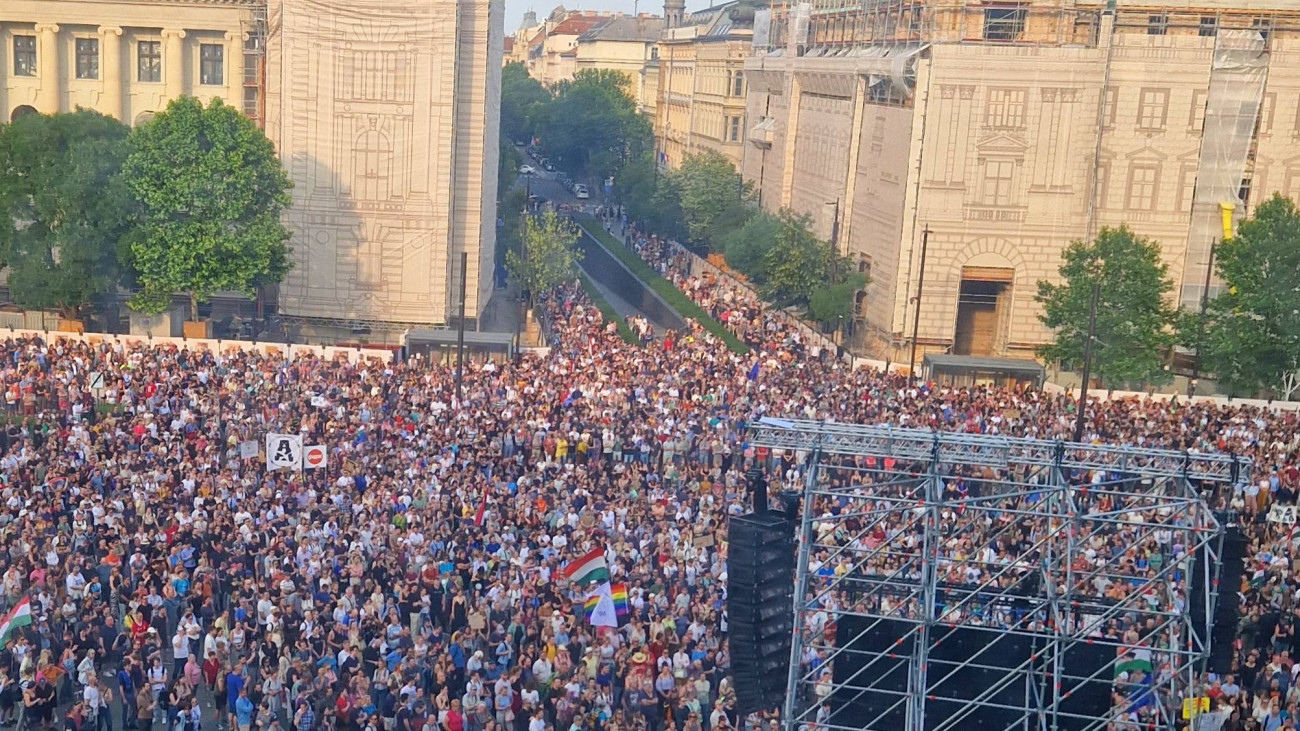 Tízezrek tüntettek a Kossuth téren kedd este Puzsér Róbert publicista és Lampé Ágnes újságíró hívására azért, hogy tiltakozzanak az átláthatósági törvény ellen – amelyet a Fidesz-frakció a múlt héten átmenetileg levetetett az Országgyűlés napirendjéről, legkorábban ősszel szavazhat róla a parlament, addig újra társadalmi vitán van, egyeztetés övezi.