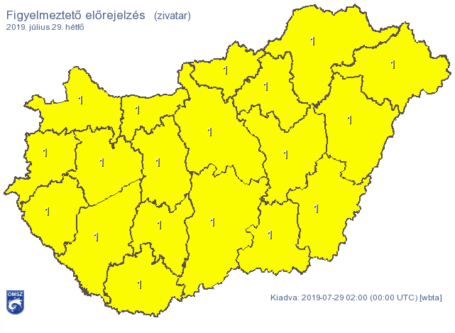 A hidegfront mögött elszórtan alakulnak ki záporok, néhol zivatar. Az ÉNy-i szél gyakran lesz erős. Megszűnik a hőség, délutánonként mérsékelten meleg idő lesz 24-29 fok közötti maximumokkal.