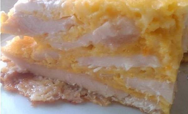 A csirkemelleket felszeletelem, kiverem, és gyengén besózom. Egy jénai tálat kivajazok, ebbe rakom majd sorban a szeleteket. A tojásokat felverem, beleteszem a sót, borsot. A hússzeleteket előbb lisztbe, majd tojásba forgatom. Utána reszelt sajtba forgatom. A jénai tálba rakom sorban, majd egymás fölé. Ha marad ki tojás vagy sajt, a tetejére öntöm. Margarindarabkákat és tejfölpettyeket rakok a tetejére. Alufóliával légmentesen lezárom. A sütőt nem kell előre felmelegíteni, nehogy elrepedjen a jénai tál. Amikor a tál oldalán látszik, hogy megpirult a sajt, akkor készült el. A sütőből kivéve 1/2 óráig pihentetjük, majd szépen felszeleteljük. Párolt rizs vagy krumplipüré illik hozzá.