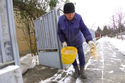 Sikeresnek mondható az útkáli is, ami egy keverék, mely tartalmaz kloridokat, ásványi zúzalékot és sót. Hatásfoka jó, a benne lévő (az önmagában alkalmazott sóhoz képest kevesebb) káros anyag pedig lassan, fokozatosan oldódik ki, így a csupasz sónál mindenképp jobb választás. Ahol fatüzelésű kályha, kandalló van a háznál, ott ennek hamuját is bátran lehet szórni a járdára, nem a legszebb látvány, de hatásos – javasolta Megyeri Szabolcs.