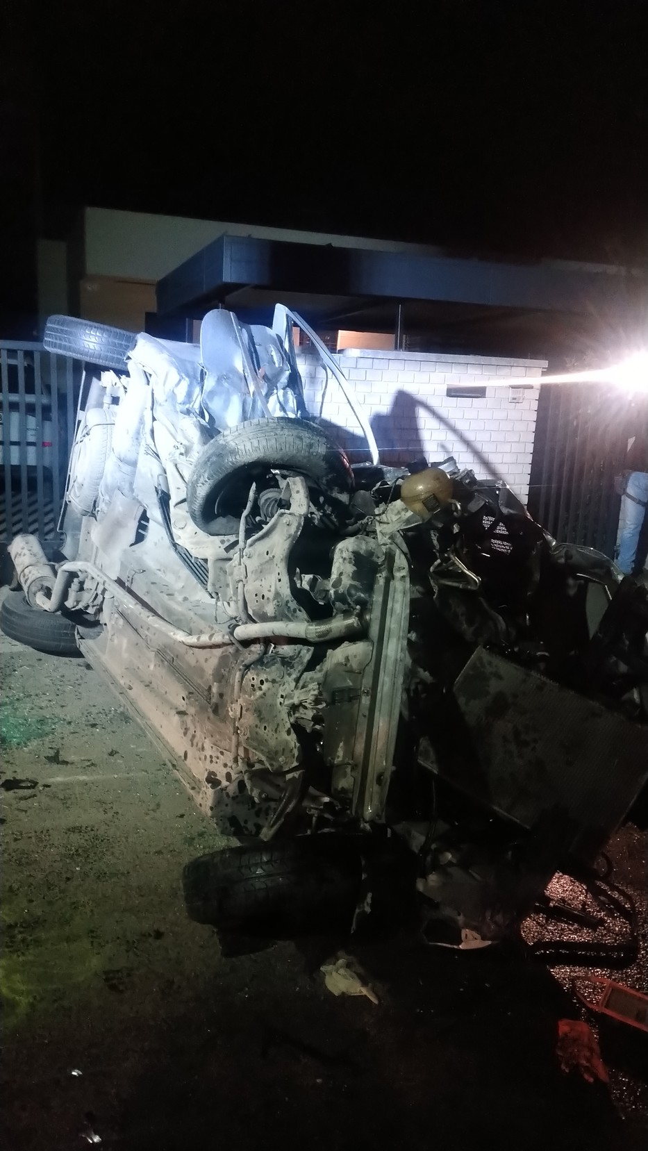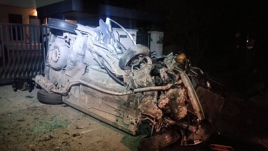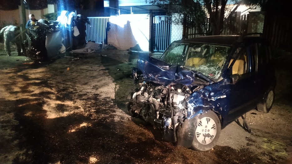 Két autó ütközött Érden a Bihari úton. Az egyik kocsi az oldalára fordult és egy kertkapuban állt meg. A jármű a felismerhetetlenségig összeroncsolódott.