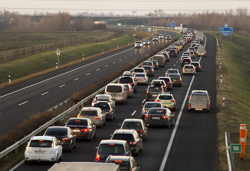 A közlekedési dugók idején mindig akad, aki a leállósávban próbál elsurranni. /Fotó: MTI – Krizsán Csaba