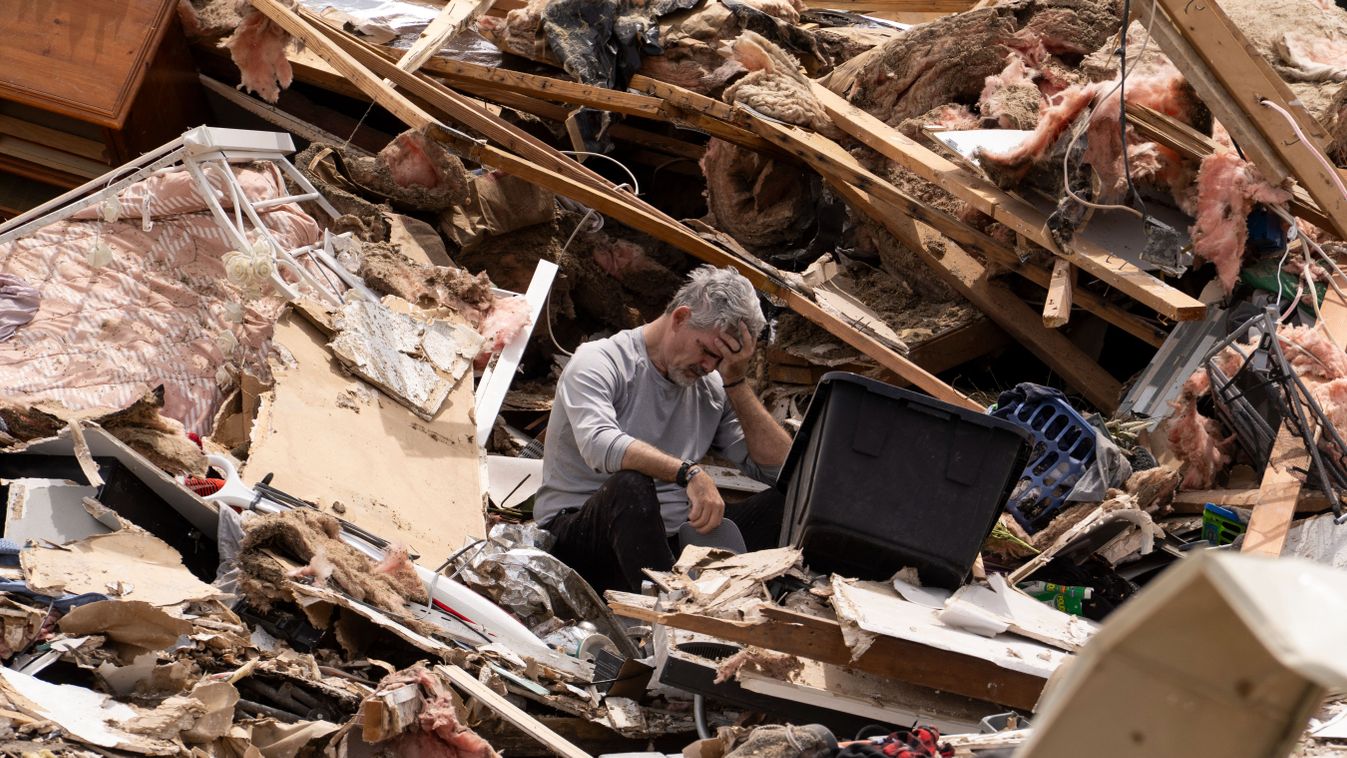 Borítókép: Egy férfi a tornádó által lerombolt otthona romjai között takarít Kentucky államban (Fotó: AFP)