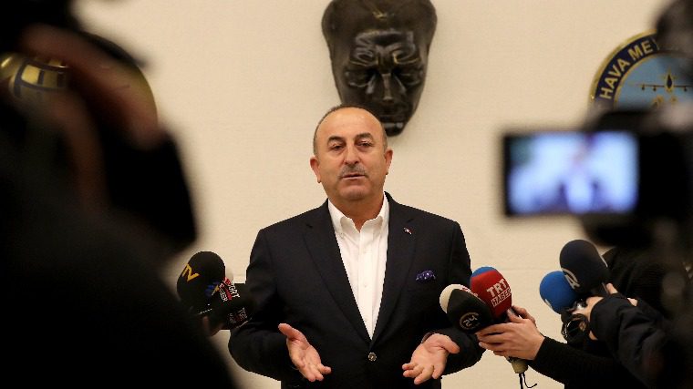 Mevlüt Cavusoglu török külügyminiszter nyilatkozik az isztambuli Atatürk repülőtéren 2017. március 11-én. (MTI/EPA/Tolga Bozoglu)