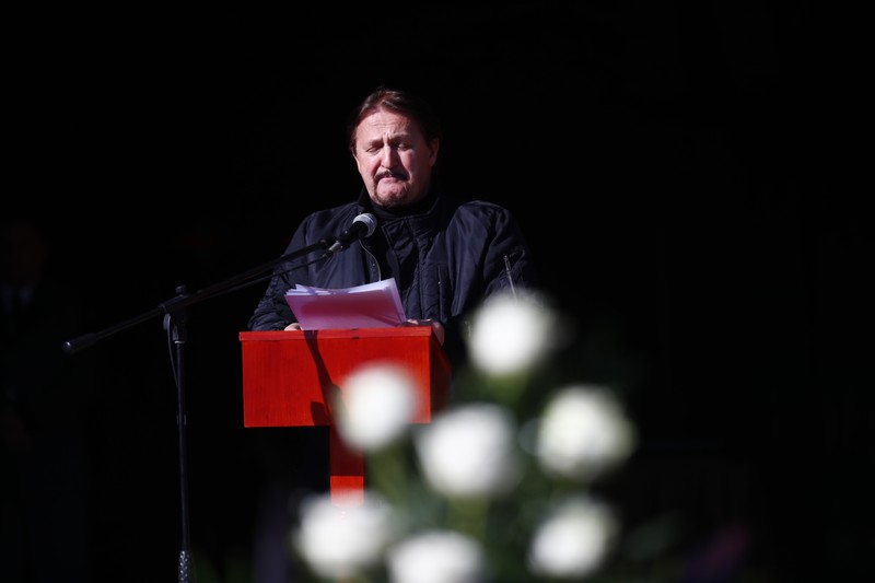 A búcsúzók rendületlenül kitartottak, Koós özvegye azonban a hosszas részvétnyilvánítások befejezte előtt távozott a sír mellől: Dékány Sarolta (71) megrendülve, fiába, Gergőbe kapaszkodva sétált el, láthatóan nagyon megviselték az események, nem tudta visszatartani a könnyeit.