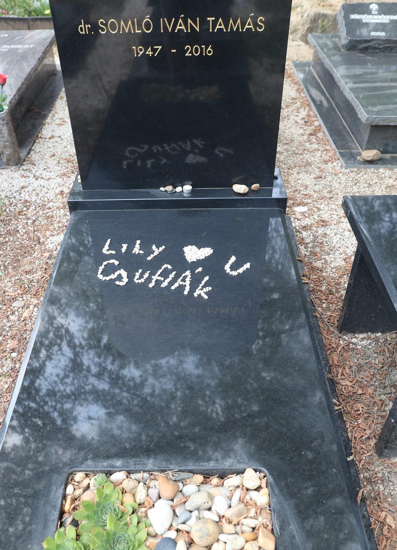 – Lily és Csuflák szeretnek téged – ezt rakta ki tegnap apró fehér kavicsokból a sír tetején Keszthelyi Gyöngyvér (43), akit Somló hívott Csufláknak egy távol-keleti utazás óta.