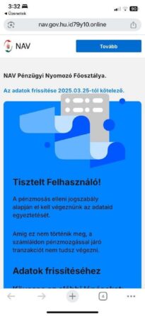 Gyanú esetén keresd fel közvetlenül a NAV honlapját: https://nav.gov.hu