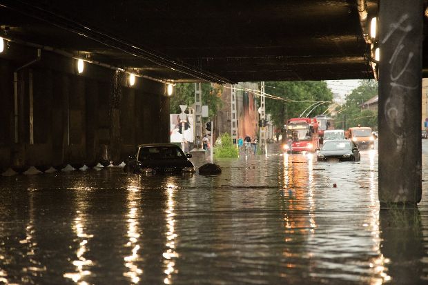 Egy aluljáróban teljesen elakadt a luxusautó, a tulajdonosának ott kellett hagyni.