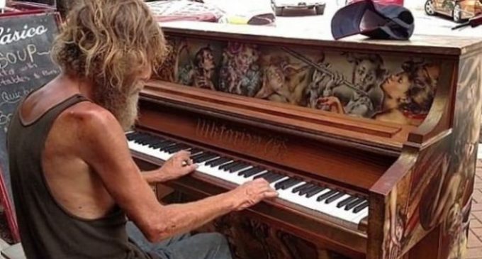 Most kapóra jött neki, hogy egy jó szándékú hangszerbolt-tulajdonos kitett egy zongorát a boltja elé. A zongorán bárki játszhat, aki csak kedvet kap hozzá!