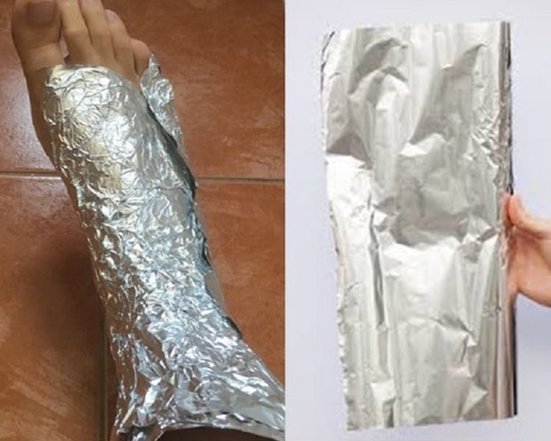 1. Tekerd be a lábfejed 5-7 rétegben alufóliával, rögzítsd zoknival, és hagyd így kb. 1 órán át.