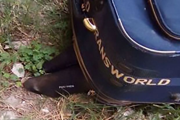 A bőröndből ugyanis két láb kandikált ki, amin még a fekete zokni is rajta volt!