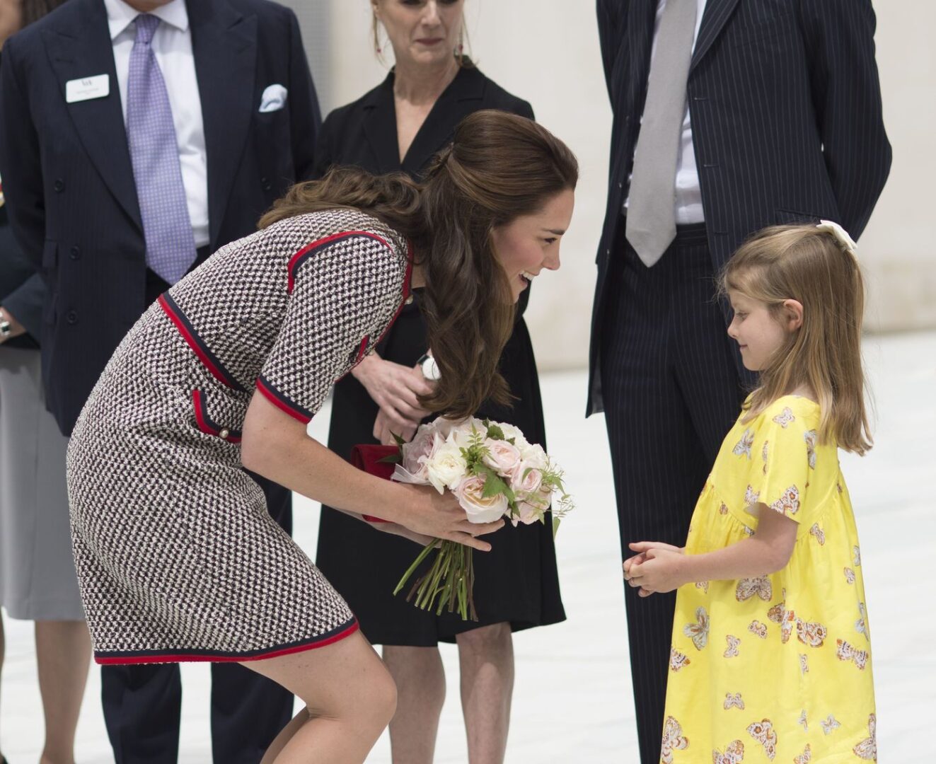 A Victoria és Albert Múzeum új kiállító tereinek megnyitójára érkezett Vilmos herceg felesége egy a Jackie stílusát kifinomultan megidéző Gucci tweed ruhában, mely piros és kék részleteivel valóban a hercegné egyik legjobb választása az idén.
