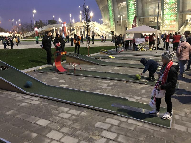 16:31 – Egyre erőteljesebben hömpölyög a tömeg, többek a Blikk stadionavató mellékletéből tájékozódnak a stadion múltjáról és érdekességeiről, mások a 17:30-as megnyitóünnepségig a szurkolói falu játékait élvezik.