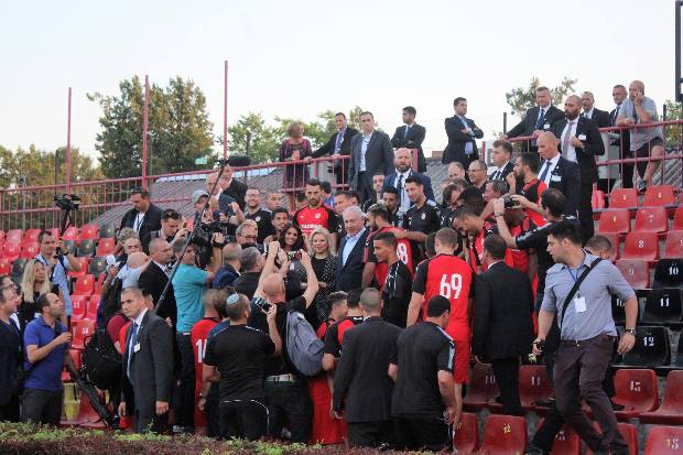 Az éppen Magyarországon tartózkodó Benjámin Netanjahut öltönyös ügynökök és a Terrorelhárítási Központ (TEK) egysége kísérte, jókora feltűnést keltve Kispesten. A kormányfő kedélyesen beszélgetett a pályán Korhut Mihály izraeli csapattársaival és Alona Barkattal, a klub tulajdonosasszonyával, sőt labdába is rúgott a gyepen.
